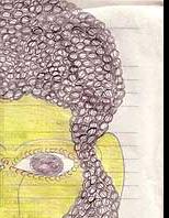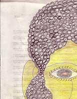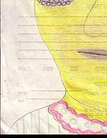 #12: Yellow-faced Woman w/ red & green collar. 8.5 x 11, crayon, pencil & colored pencil on Prison Training Report