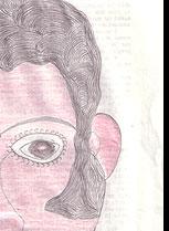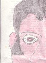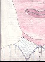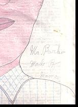 #16: Man in blue-striped shirt, Signed: Mr. Barko Made By Momo. 8.5 x 14, crayon, pencil & colored pencil on Prison Newsletter