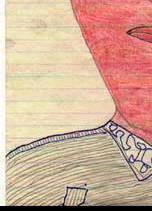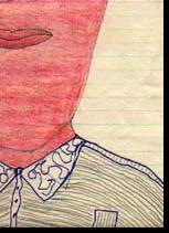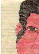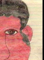 #25: Red-faced Woman 8.5 X 14 pencil, blue pen & crayon on lined paper