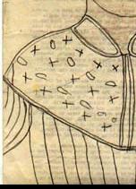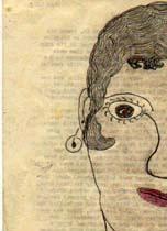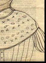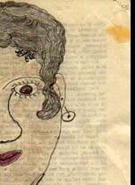 #28: Woman in Patterned Dress 8.5 X 14 pencil & crayon on Prison Newsletter
